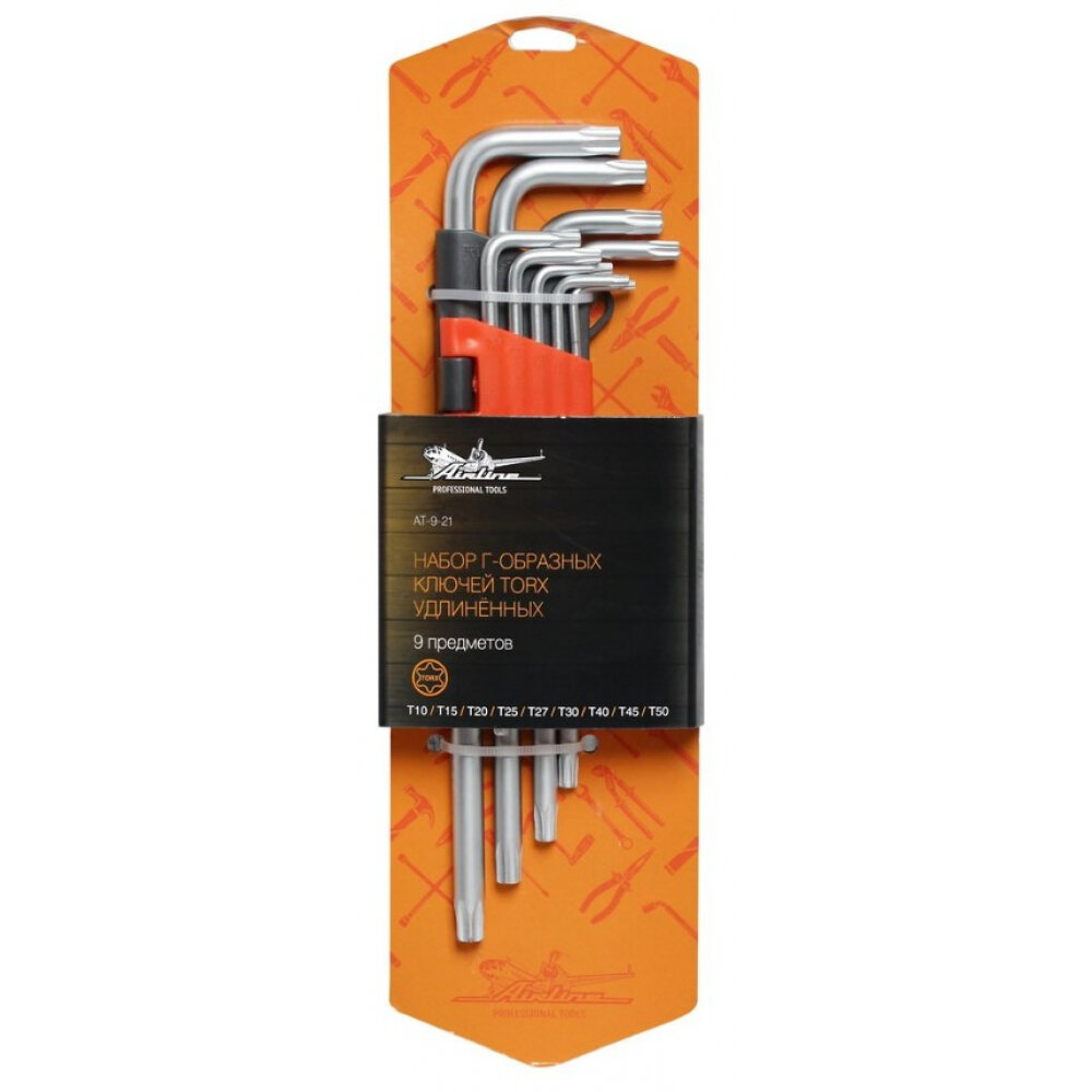 Набор Г-образных ключей TORX инбус с отв. удлинённых 9 предметов (Т10, Т15, Т20, Т25, Т27, Т30, Т40, Т45, Т50) пласт.подвес AT-9-21 AIRLINE
