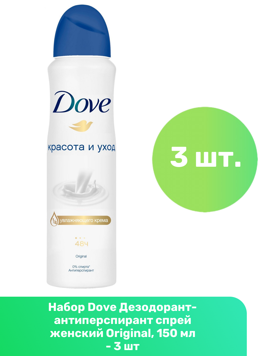 Ниже Вы можете прочитать отзывы на Набор из 3 штук Антиперспирант-дезодорант спрей Dove Original 150мл, ознакомится с подробными характеристиками, посмотреть интересные обзоры и фотографии на Набор из 3 штук Антиперспирант-дезодорант спрей Dove Original 150мл.