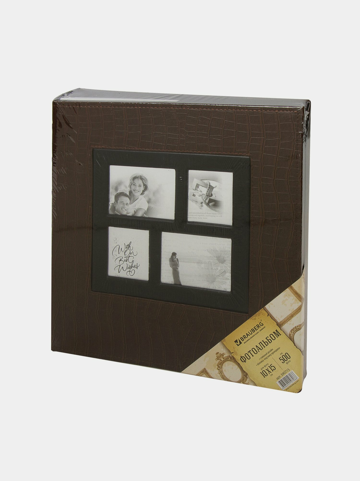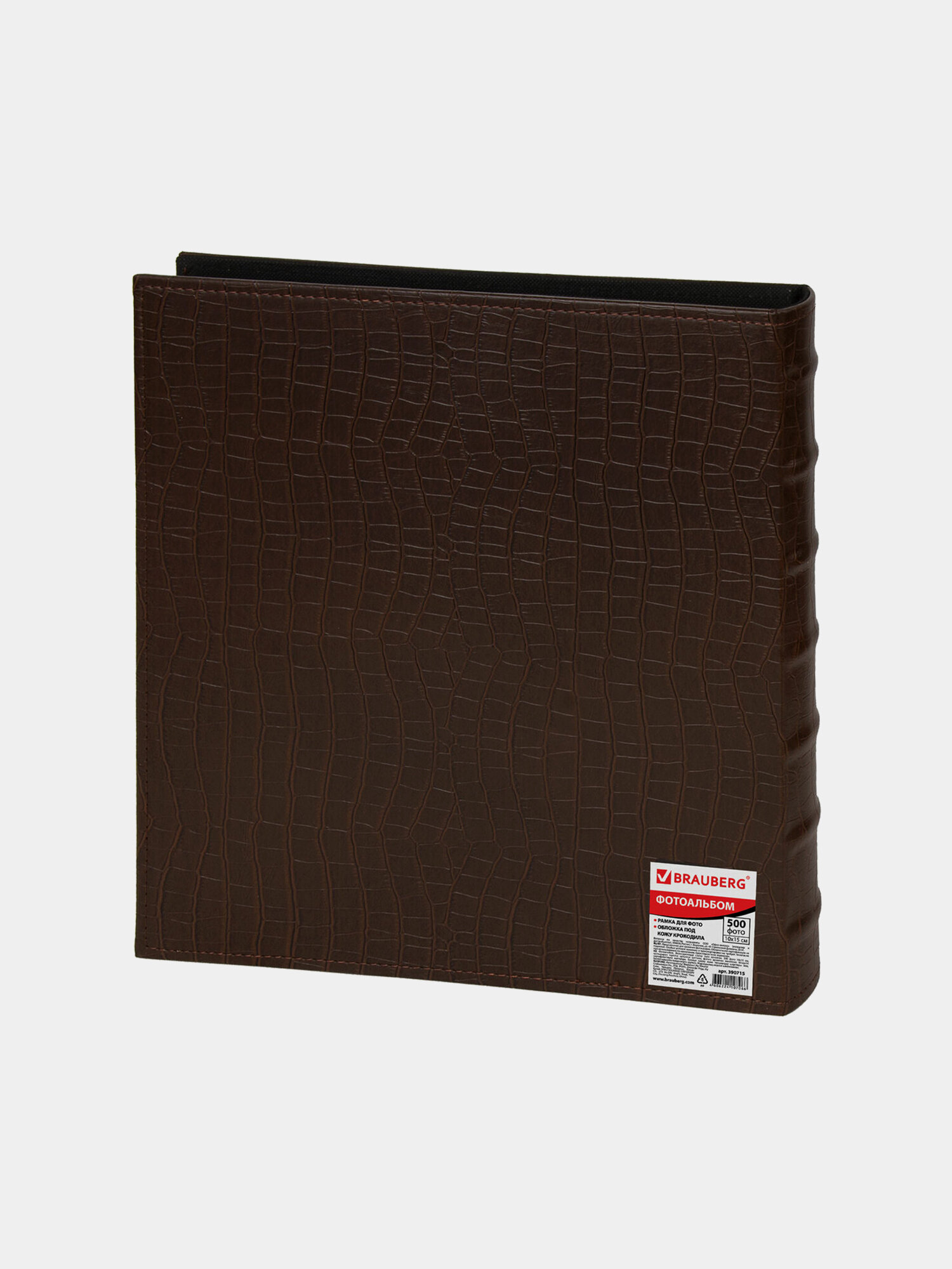 Фотоальбом Brauberg На 500 фото 10*15 см, под кожу крокодила, рамка для фото, коричневый (390715)
