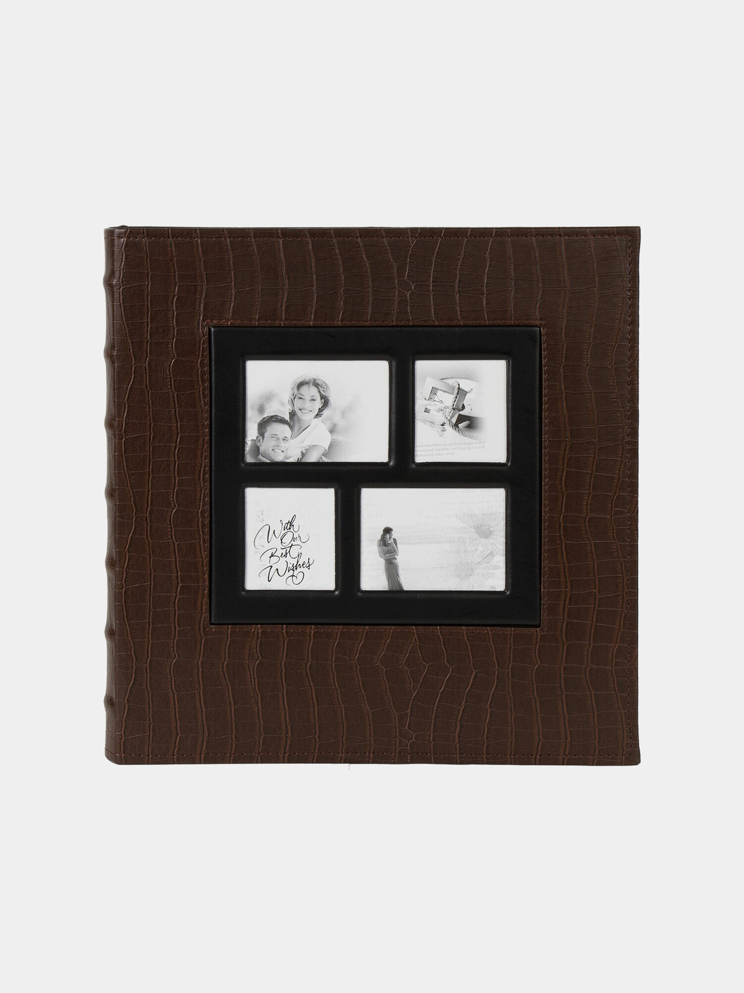 Фотоальбом BRAUBERG на 500 фотографий 10х15 см, обложка под кожу крокодила, коричневый, рамка для фотографий