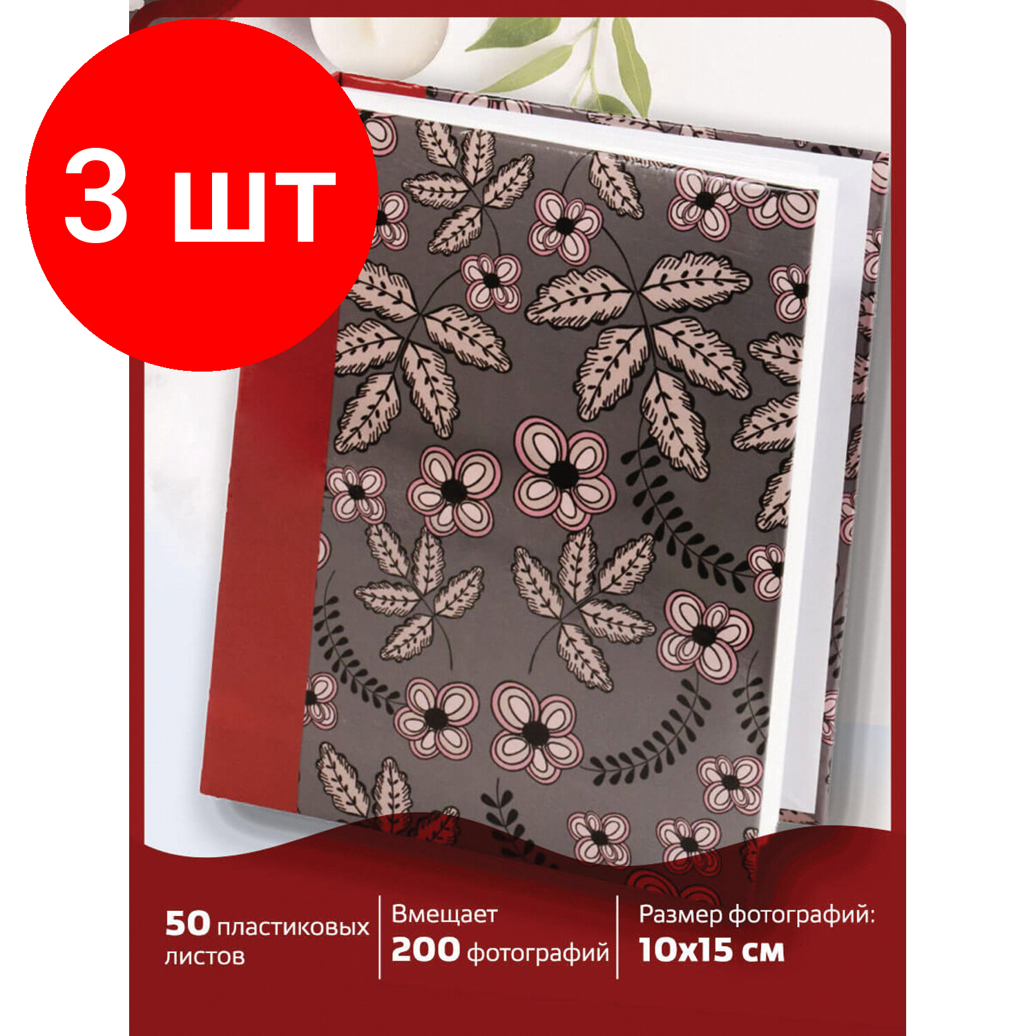 СохранитьКомплект 3 шт, Фотоальбом BRAUBERG на 200 фото 10х15 см, твердая обложка, "Флора", серый с красным, 391121 интересное: