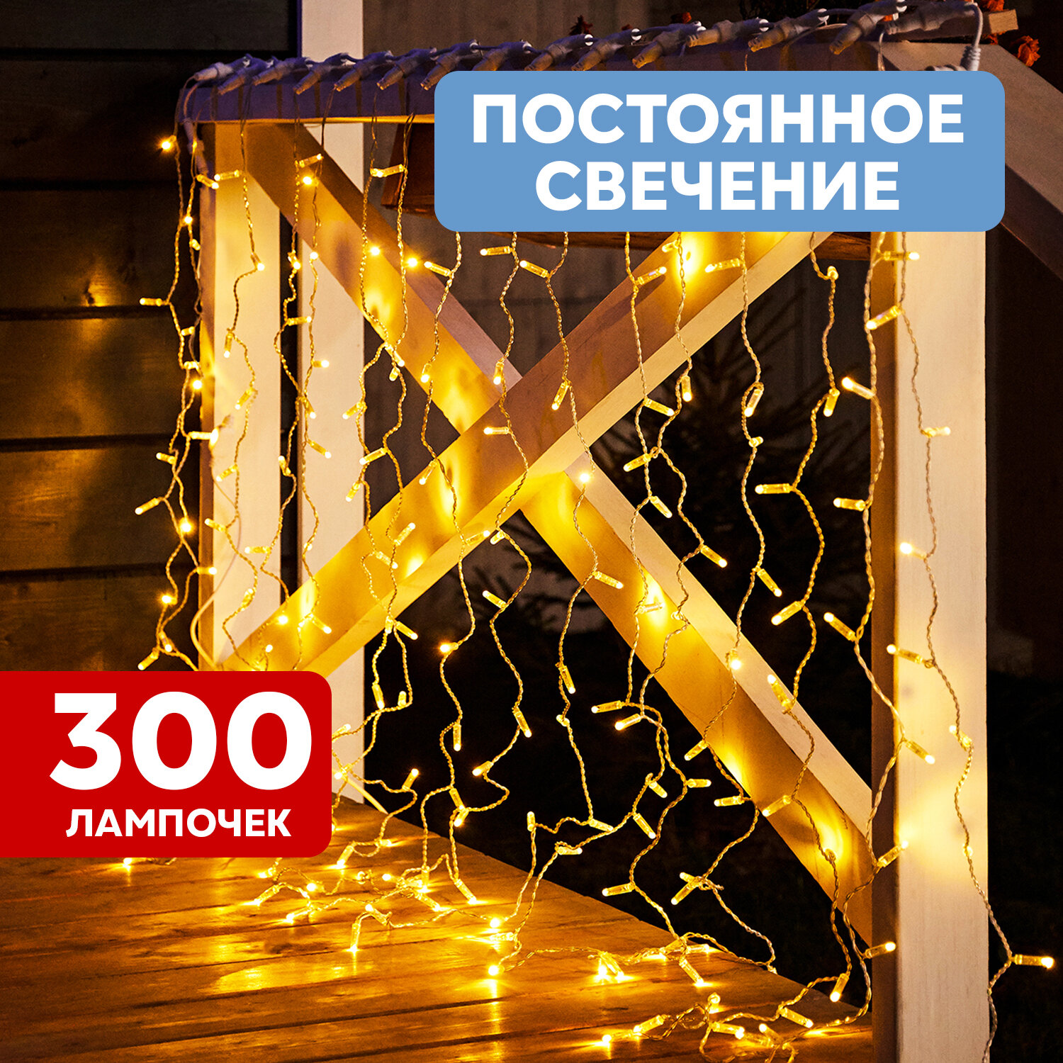 Светодиодная гирлянда Neon-night "Дождь" 2.5х2 м, 8 режимов, 300 тепло-белых светодиодов, прозрачный провод
