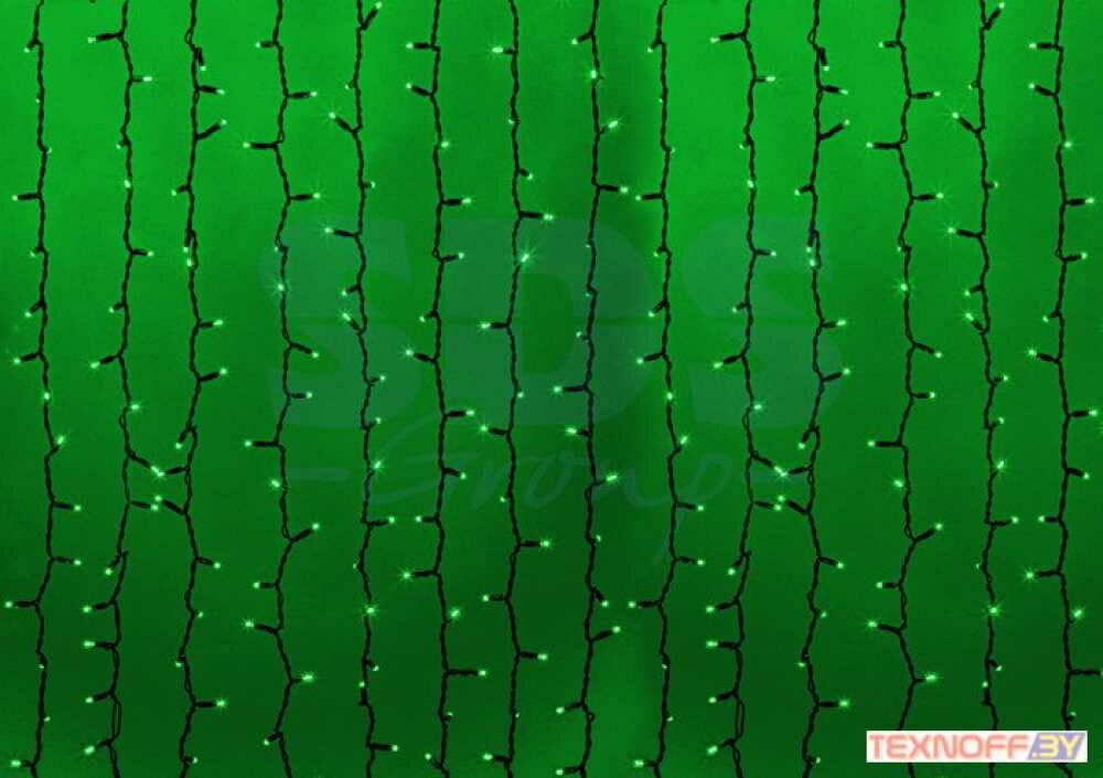 Купить Гирлянда светодиодная Занавес 2х1,5м 360 LED зеленый черный ПВХ IP65 постоянное свечение 230В соединяется NEON-NIGHT шнур в комплекте 1 шт арт. 235-124