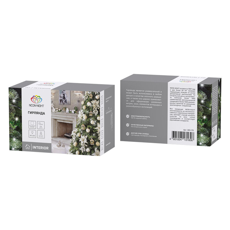 Электрогирлянда новогодняя NEON-NIGHT 303-186, 10 м, 80 ламп, теплый белый