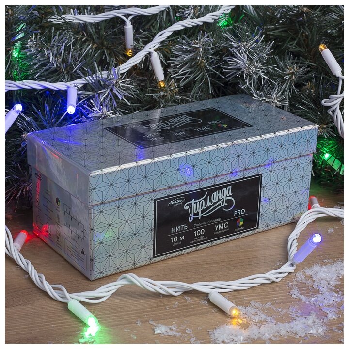 Гирлянда уличная Luazon Lighting Нить УМС, 10 м, 3W LED(IP65-O)-100-220V, нить белая, свечение мульти (3584109)