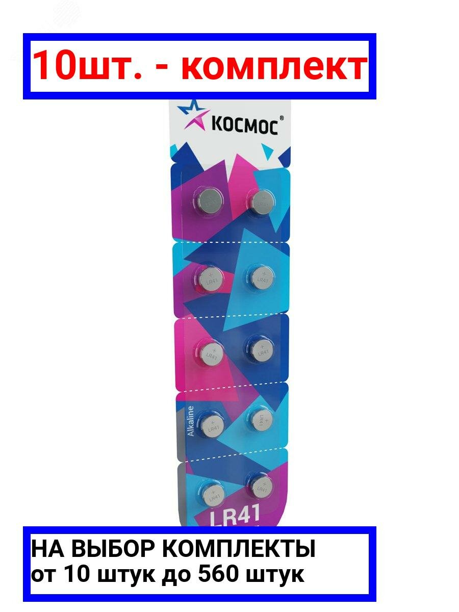 Космос Элемент питания алкалиновый "таблетка" LR41/AG3 для часов (блист.10шт) космос KOCG3(LR41)10BL