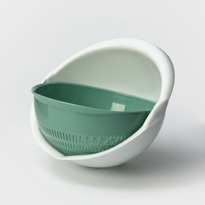 Миска-дуршлаг IDEA (М-Пластика) М 1129, 1.7 л, 2 шт., белый/фисташковый