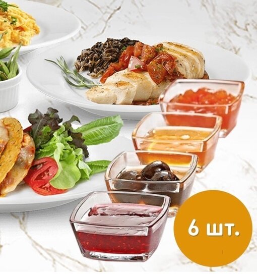 Соусники стеклянные квадратные 66х66 мм, набор 6 шт., Pasabahce