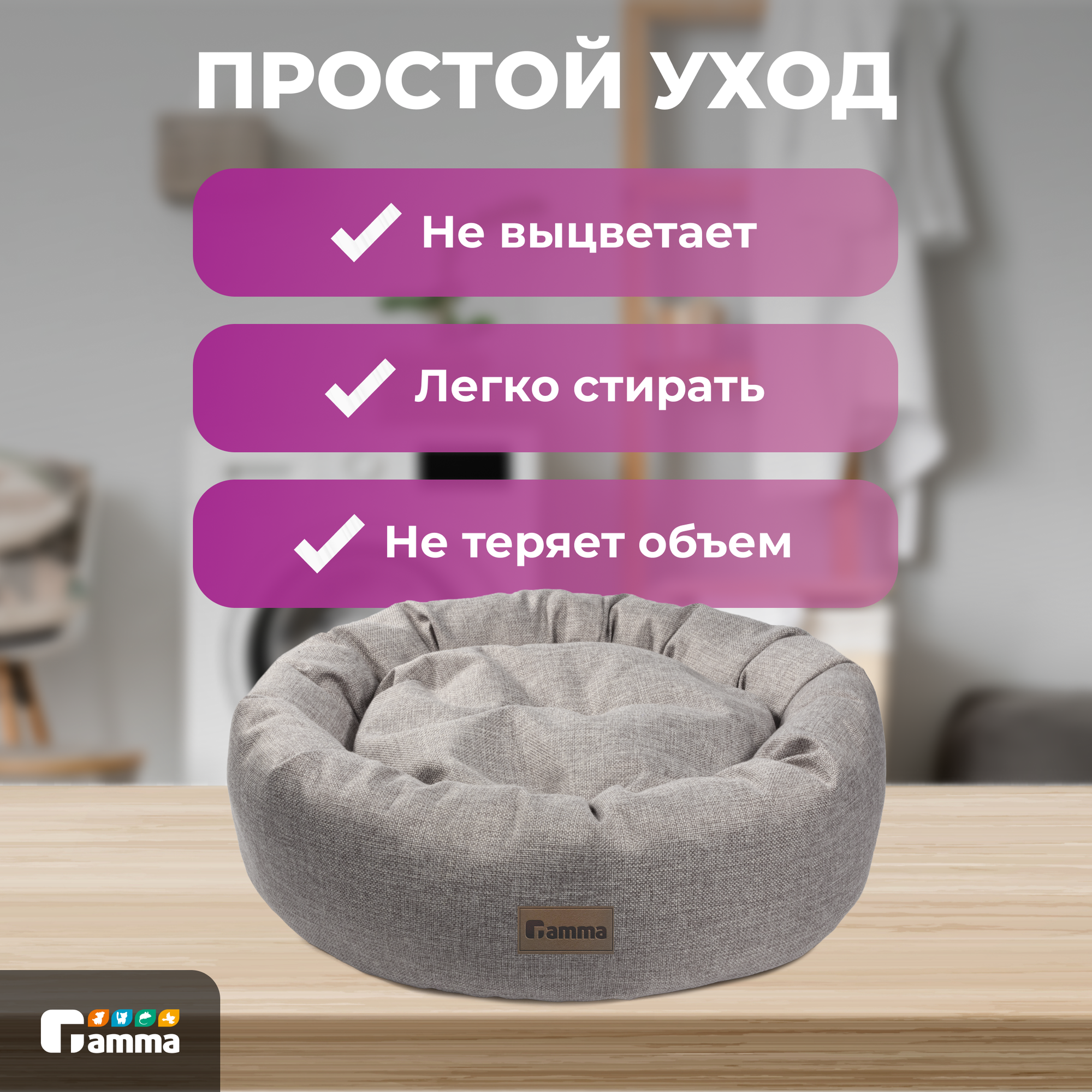 Гамма Лежанка круглая "Кижи" со съемной подушкой, рогожка, бежевая, 50*50*16 см