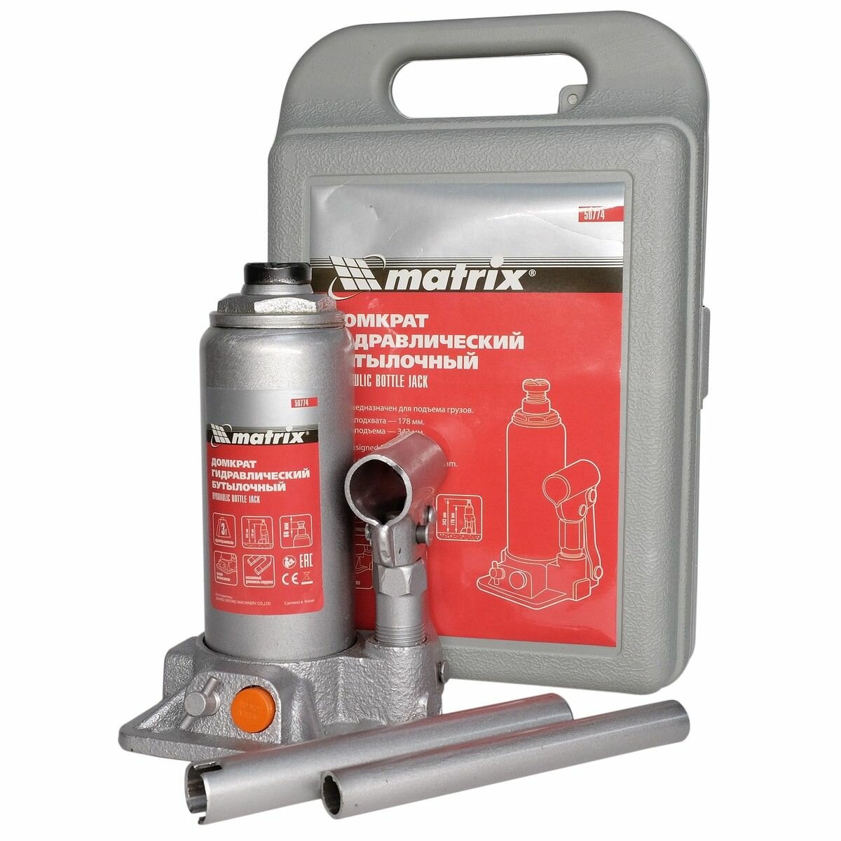 Домкрат Гидравлический 3т Matrix Бутылочный В Кейсе 178–343мм 50774 Matrix арт. 50774