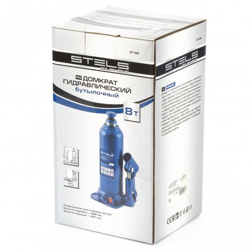 Домкрат гидравлический бутылочный, 8 т, h подъема 222-447 мм Stels, арт. 51165
