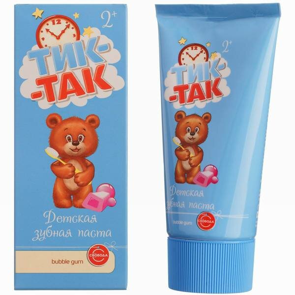 Зубная паста свобода Тик-Так bubble gum 2+, 62 мл, 62 г