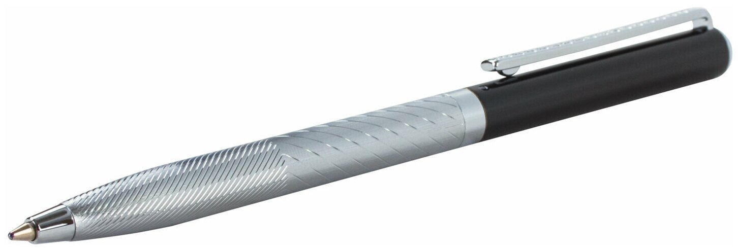 Ручка шариковая Galant Landsberg, корпус серебристый с черным, хромированные детали, пишущий узел 0,7 мм, синяя