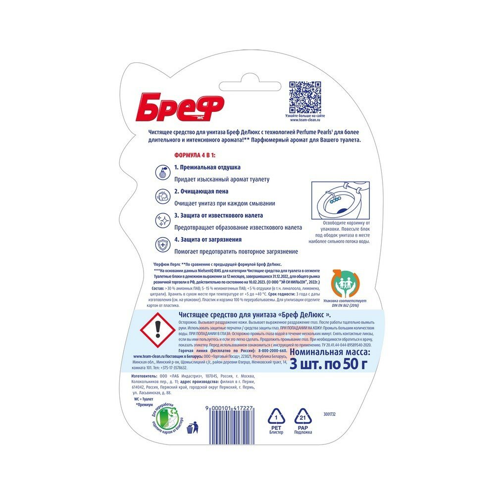Блок для унитаза BREF бреф Делюкс Жасмин, 3*50 г