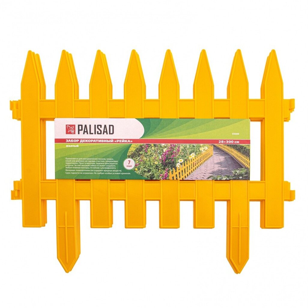 Забор декоративный Palisad Рейка, 28 x 300 см, 7 секций, желтый