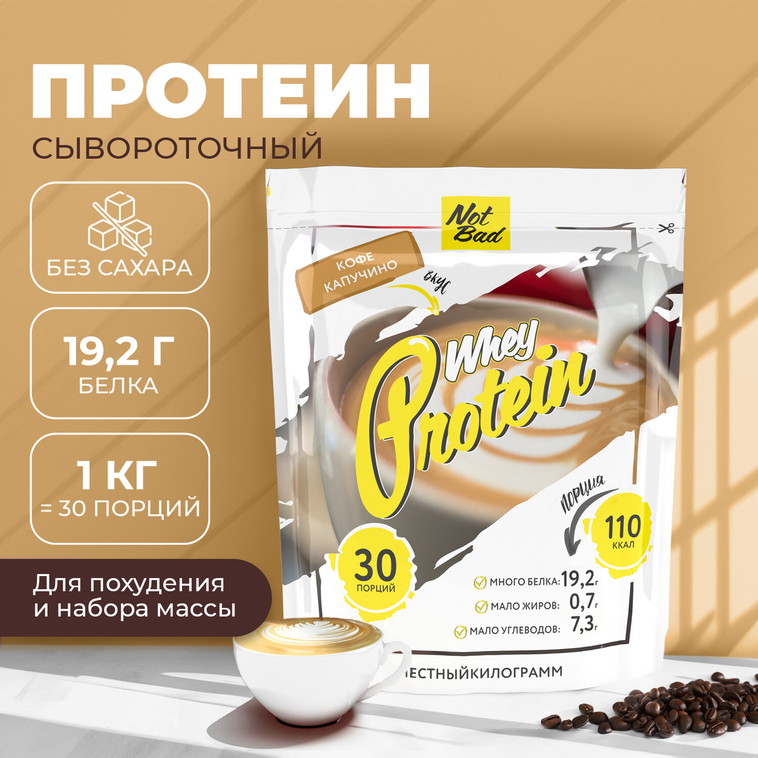 Купить Протеин сывороточный NOTBAD Whey Protein 1000 г (Кофе капучино)