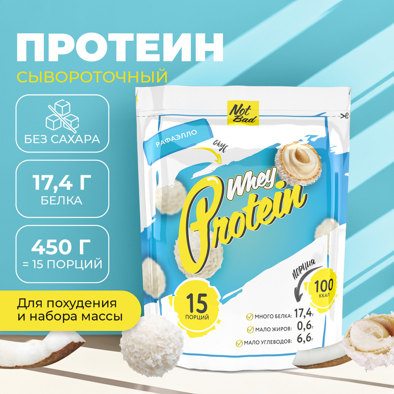 Купить Протеин сывороточный NOTBAD Whey Protein 450 г (Рафаэлло)