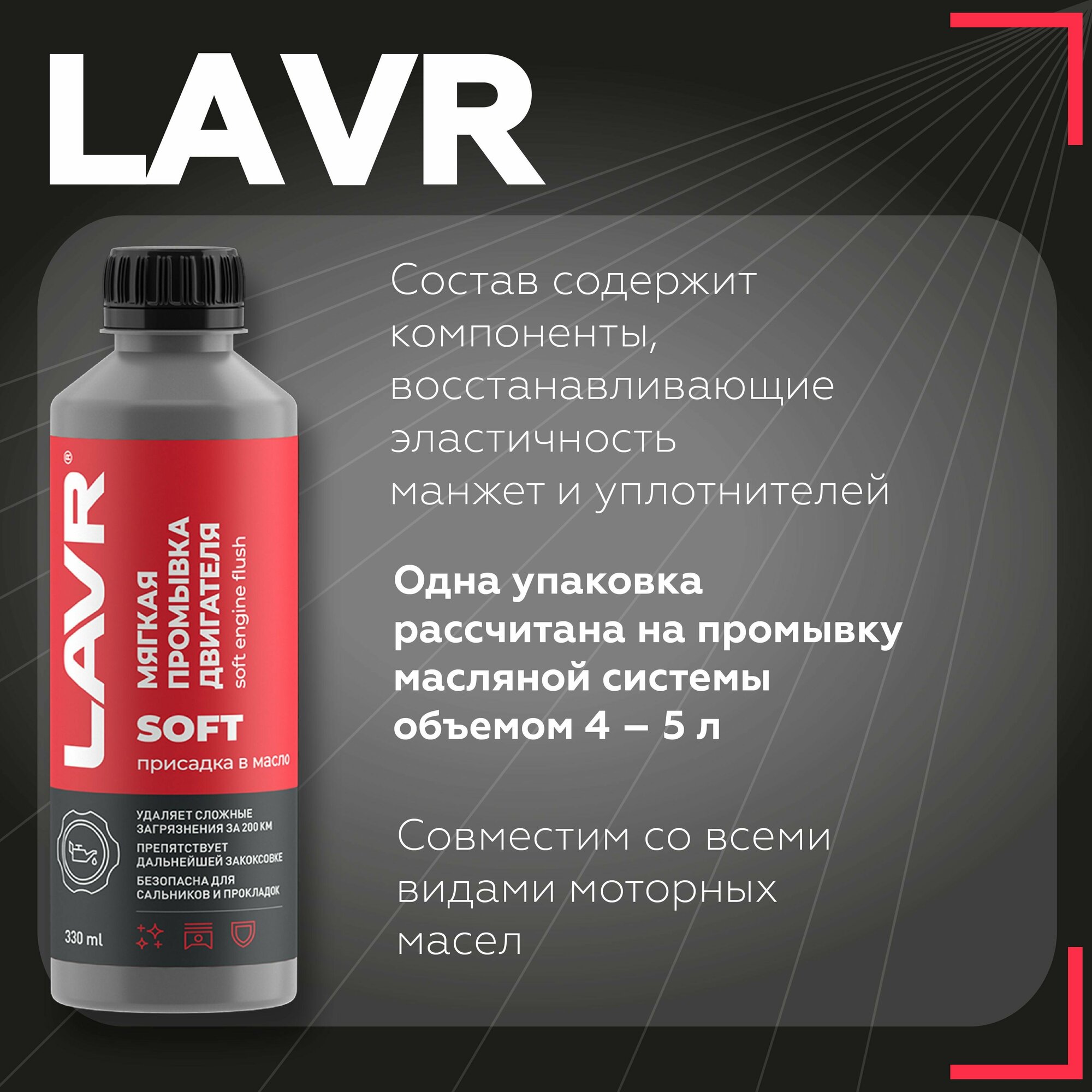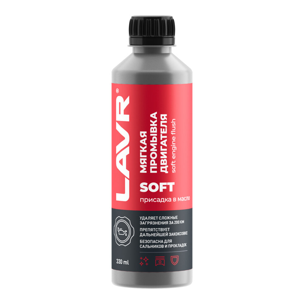 Мягкая промывка двигателя Lavr присадка в масло на 200 км, 330 мл Ln1005 3942618 .