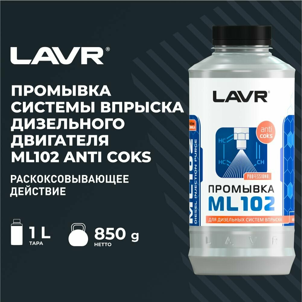 LAVR / ln2002 / Промывка дизельных систем впрыска ML102 С раскоксовывающим действием LAVR Diesel injection purge with anti coks action 1000мл