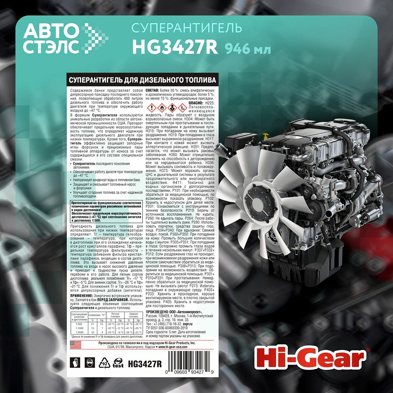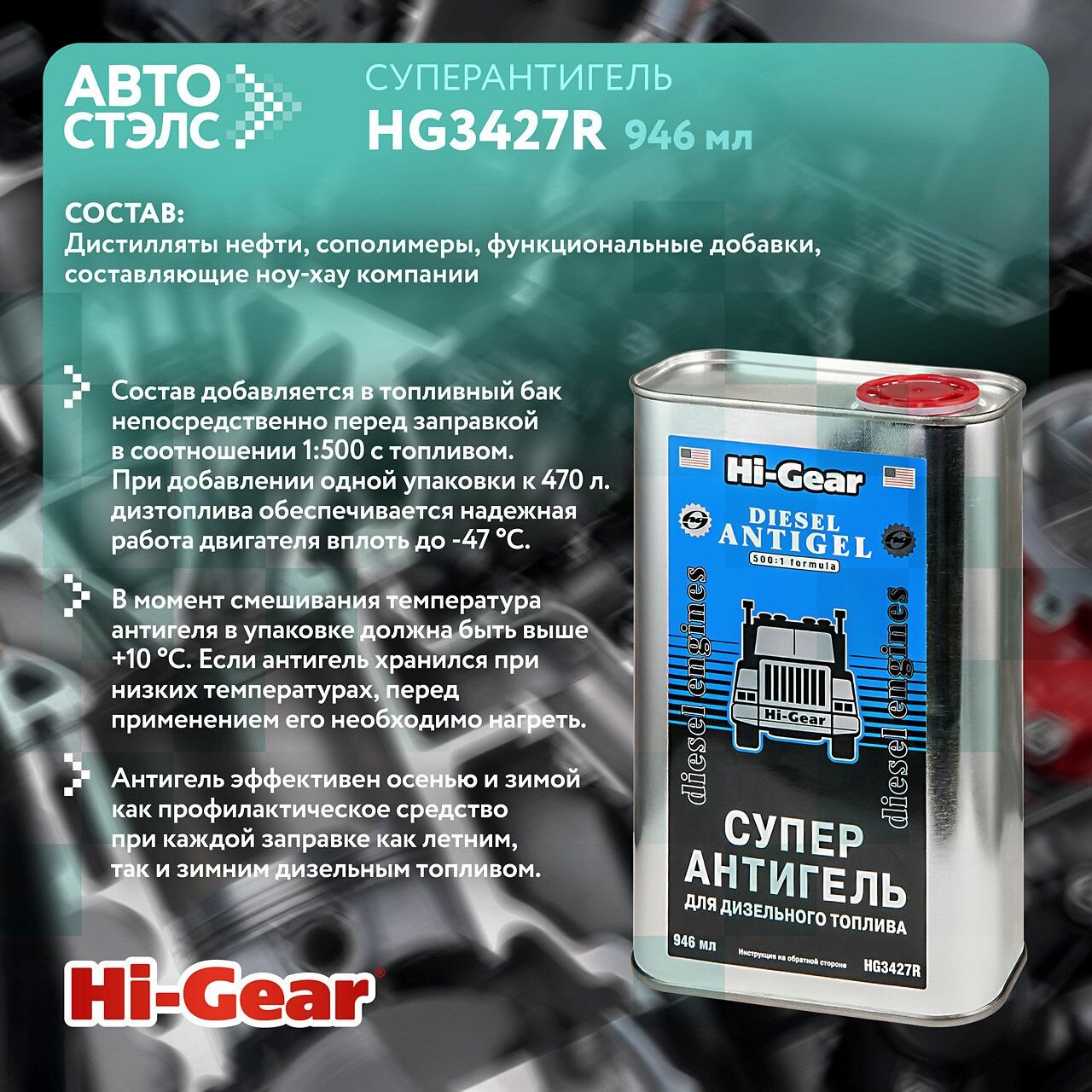 Суперантигель для дизтоплива (946ml) HI-GEAR / арт. HG3427 - (1 шт)