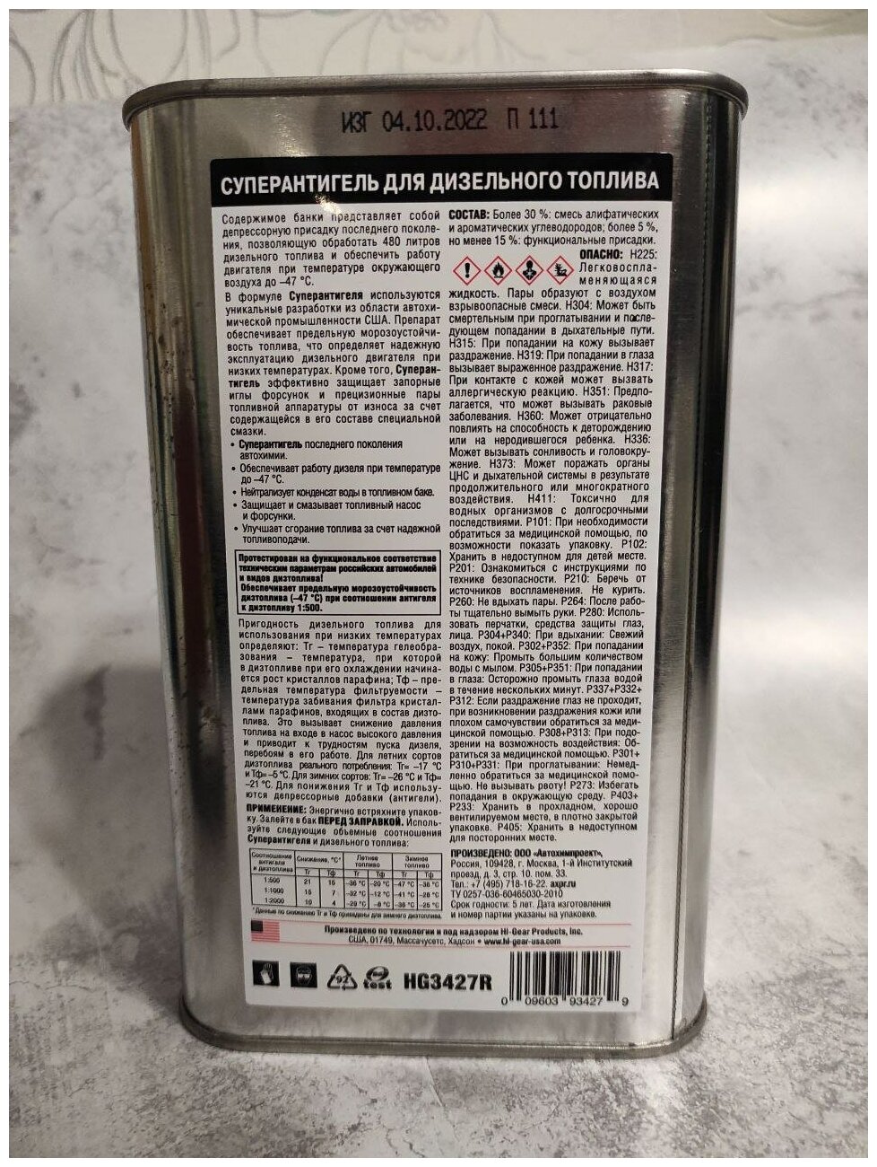 антигель дизтоплива hi-gear
