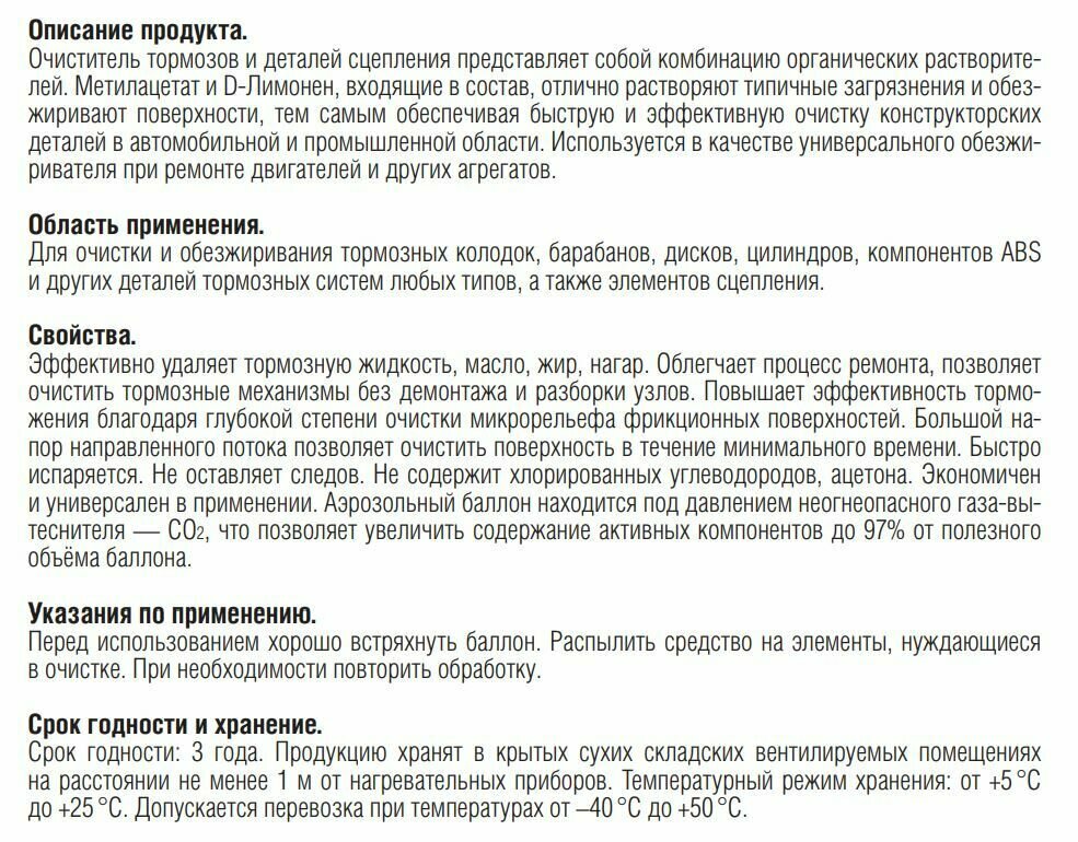 Очиститель деталей тормозов и сцепления (универсальный обезжириватель) (аэрозоль