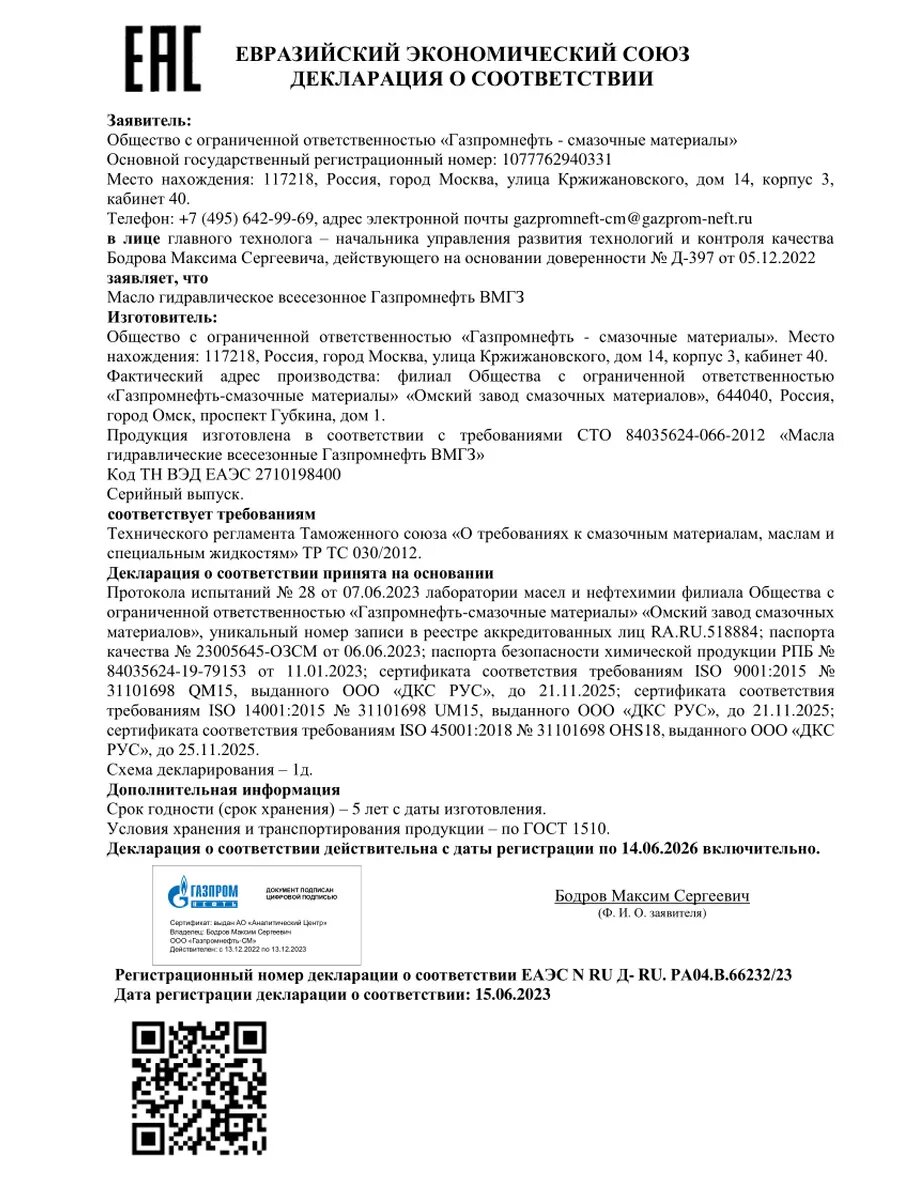 Масло Газпромнефть Вмгз 5л, Фасовка:5л Gazpromneft арт. 2389902414