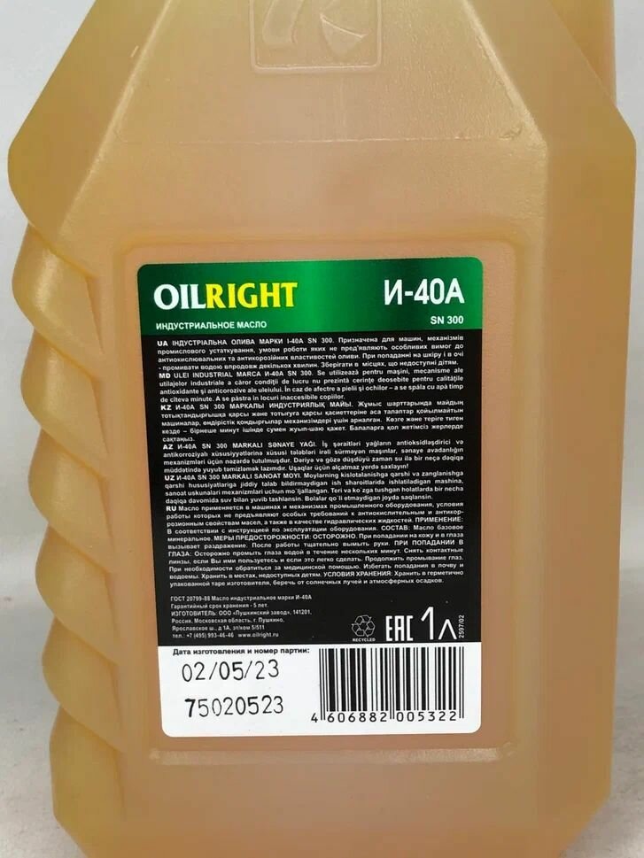 Индустриальное масло OILRIGHT И-40 А 1 л
