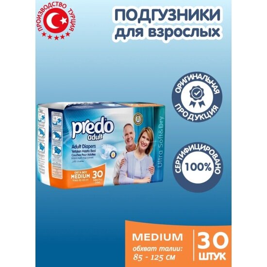 Купить Подгузники для взрослых Predo размер М (85-125 см), 30 шт .