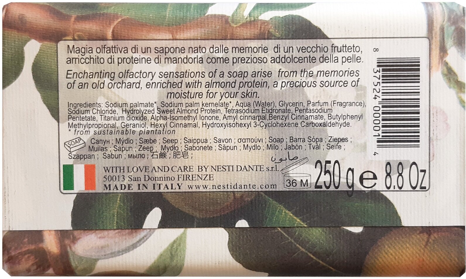 Мыло твердое туалетное инжир и миндальное молочко IL Frutteto Nesti Dante/Нести Данте 250г