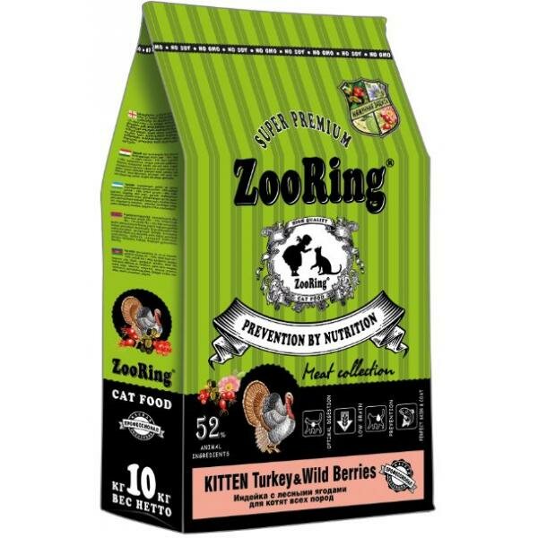 Сухой корм ZooRing KITTEN индейка с лесными ягодами для котят, 10кг