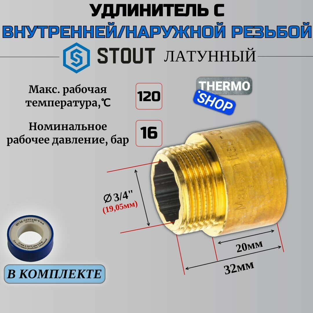 Купить Удлинитель 3/4X20 STOUT SFT-0001-003420