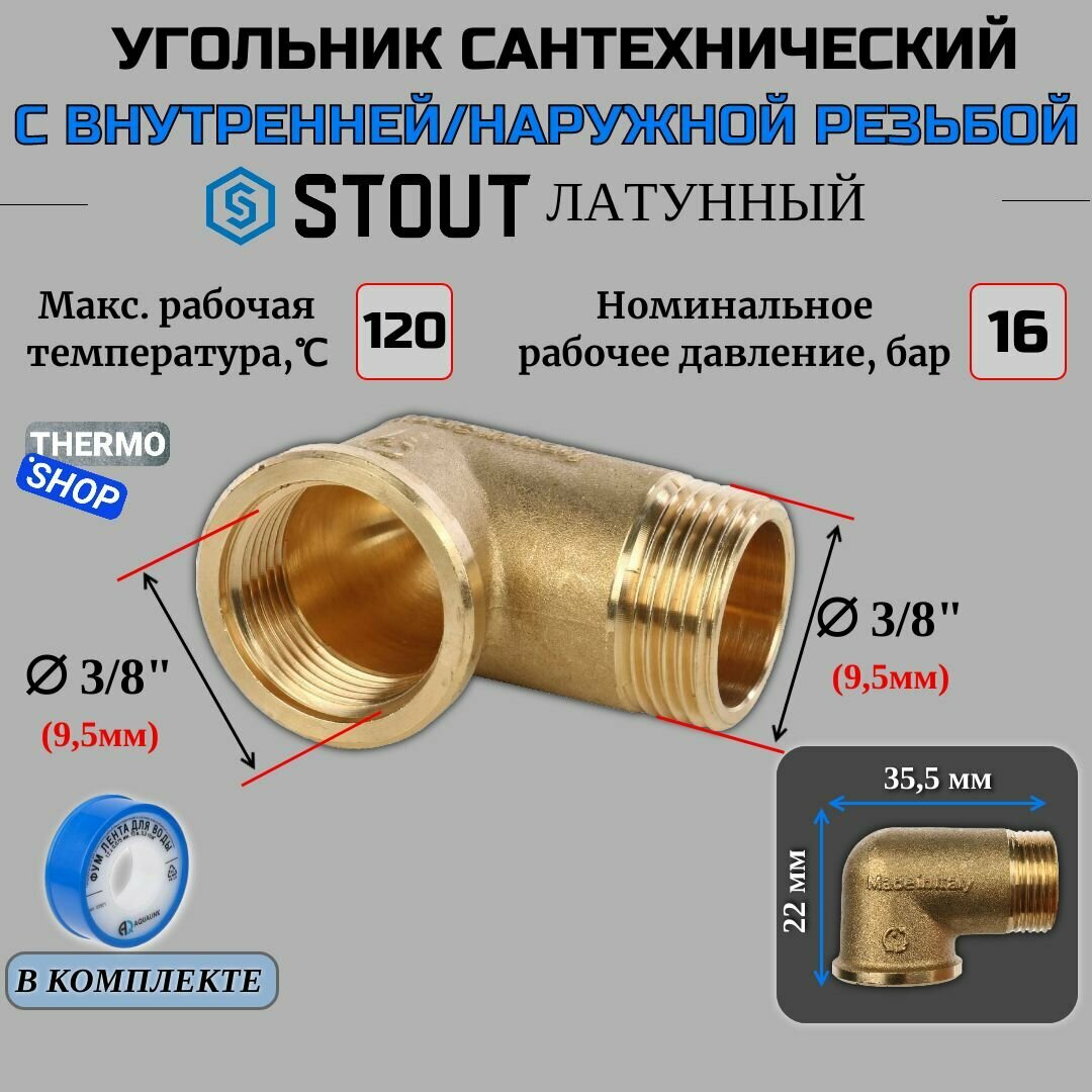 Уголок 1 1/2 НВ 10 шт латунный сантехнический (угол) STOUT ФУМ лента 10 м