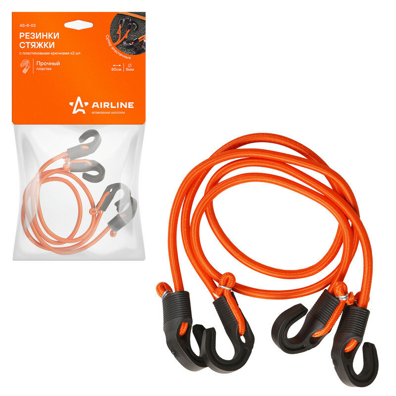 Стяжка крепления груза Airline (80см,D-8мм) (2шт.с пласт.крюч) (AS-R-03) AIRLINE AS-R-03