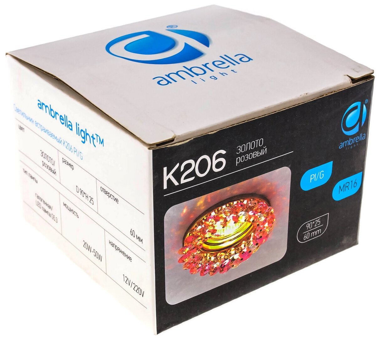 Встраиваемый светильник Ambrella light Crystal K206 PI/G интересное: