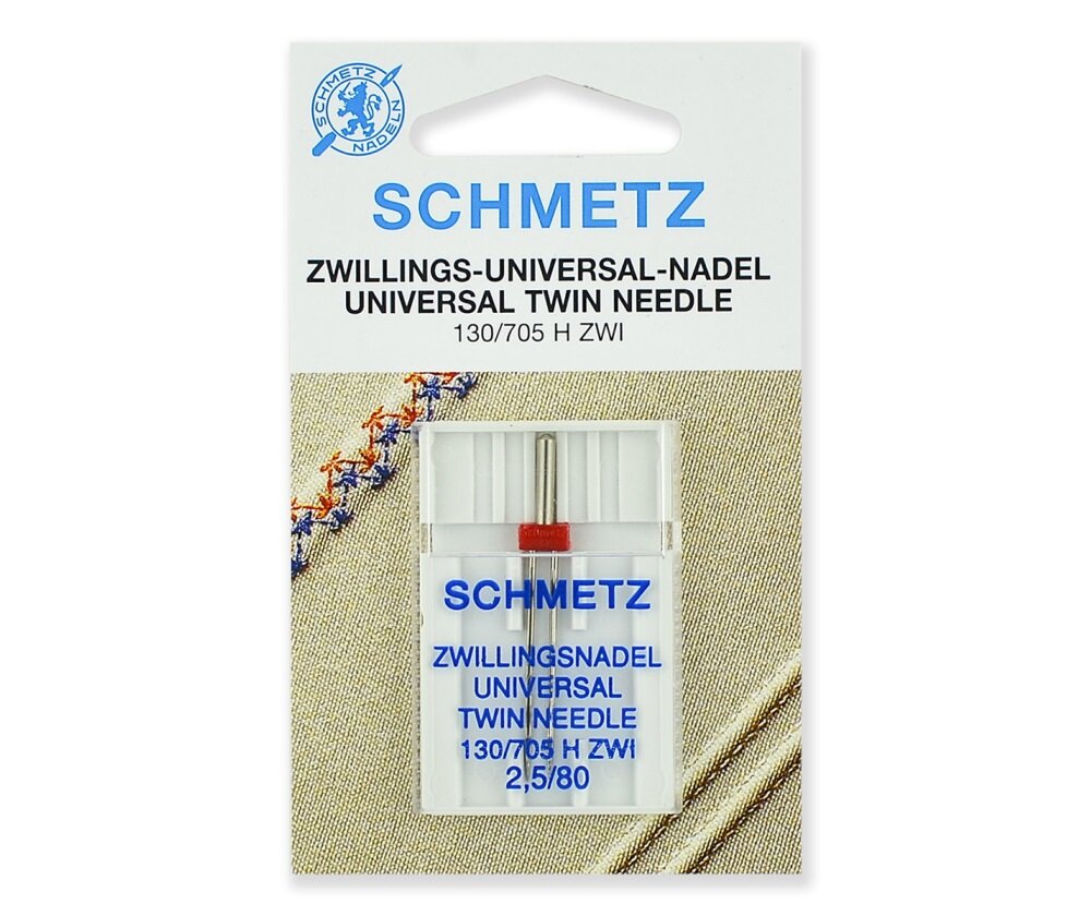 Иглы для бытовых швейных машин двойные универсальные (1шт) 130/705H ZWI №80/2,5 Schmetz 2627554