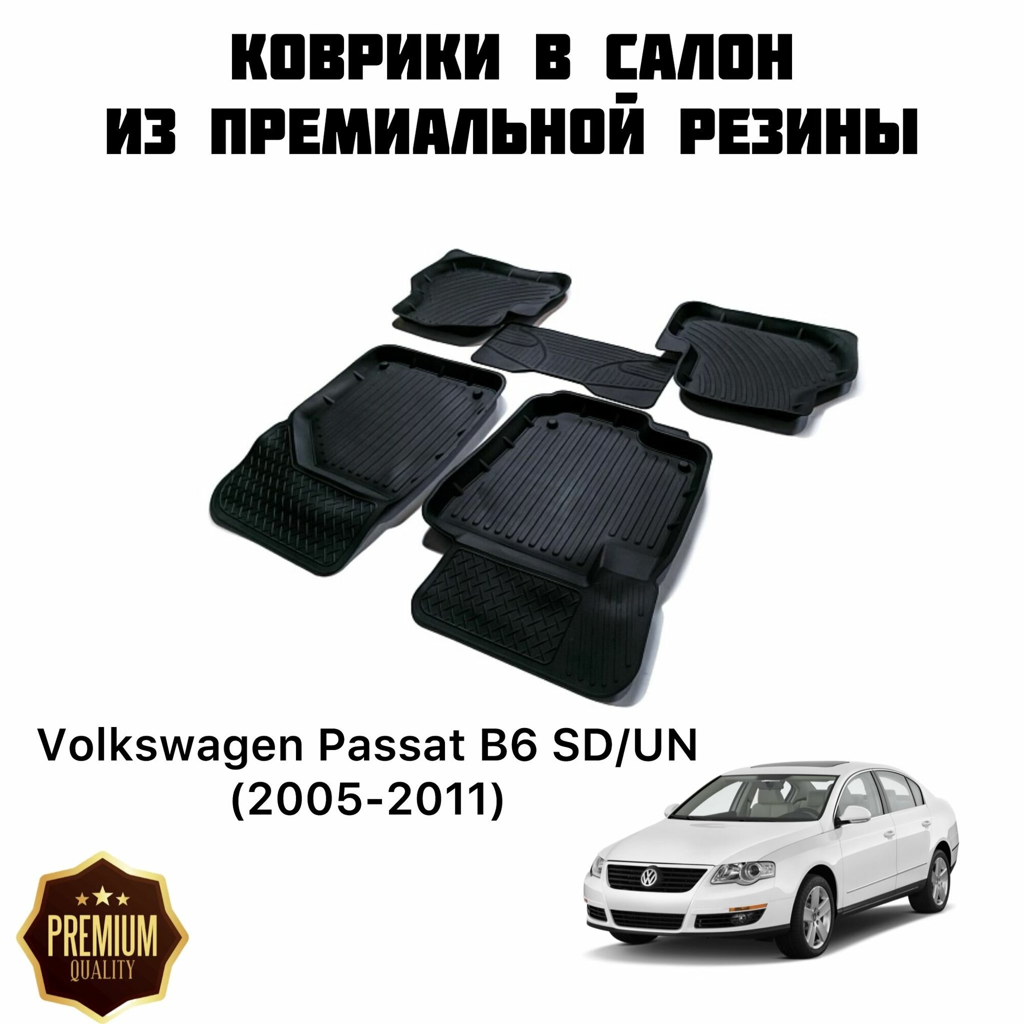 Резиновые коврики 3D PREMIUM для Volkswagen Passat B6 SD/UN (2005-2011) / Коврики Фольксваген Пассат Б6