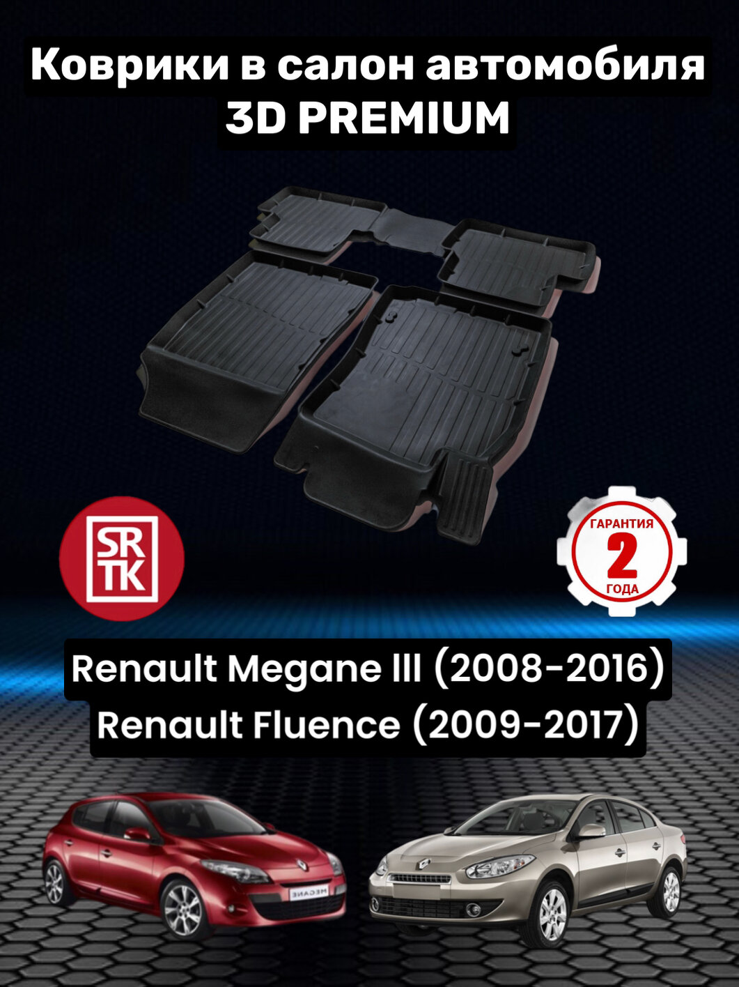 Коврики резиновые в салон для Рено Меган 3/Рено Флюенс/ Renault Fluence (2009-2017) Megane III (2008-2016) 3D PREMIUM SRTK (Саранск) комплект в салон