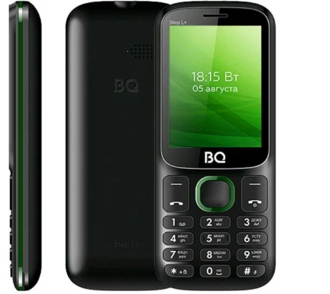 Мобильный телефон BQ 2440 Step L+ Black+Green. SC6531E, 1, 208MHZ, ThreadX, 32 Mb, 32 Mb, 2G GSM 850/900/1800/1900, Bluetooth Версия 2.1 Экран: 2.4 ,