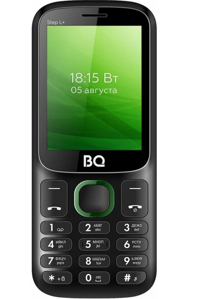 Кнопочный мобильный телефон с 2-мя СИМ-картами BQ 2440 Step L+ Black+Green / Без камеры