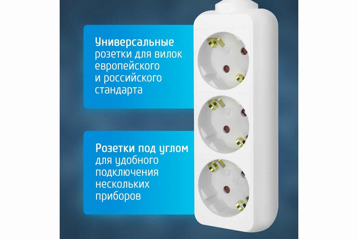 Удлинитель для гирлянды сетевой для розетки фотон 16А 5м 3 розетки с заземлением белый, ГОСТ