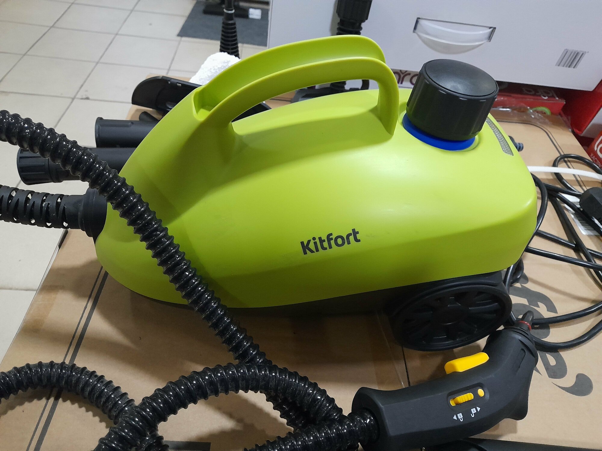 Купить Пароочиститель Kitfort КТ-951, 1250 Вт, 0.75 л, нагрев 7-9 мин, чёрно-зелёный
