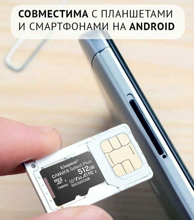 СохранитьКарта памяти Kingston microSDXC 512 ГБ Class 10, V30, A1, UHS Class 3, R/W 100/85 МБ/с, адаптер на SD, 1 шт., черный интересное: