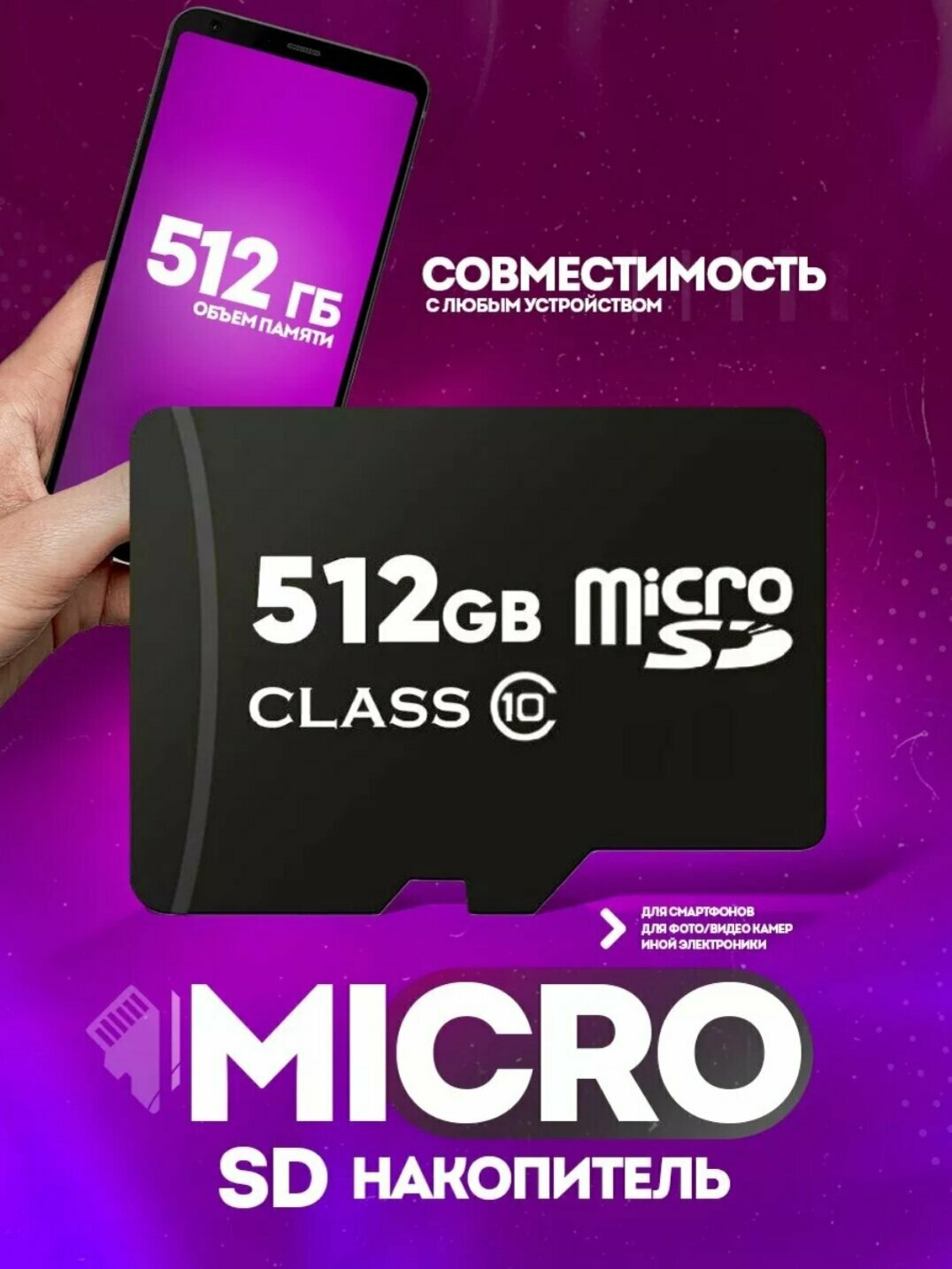 Карта памяти MicroSD 512Гб Kingston SDCS2/512GB