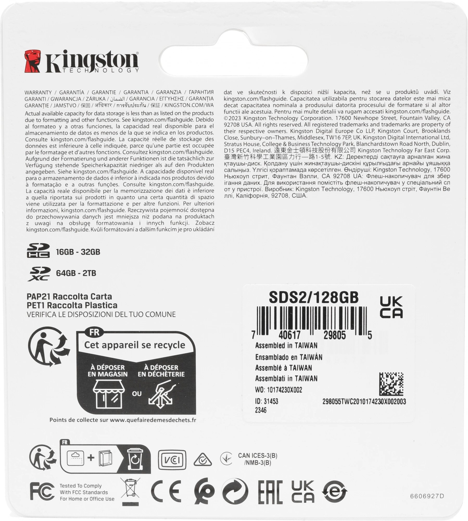 Карта памяти SDXC 128GB C10 SDS2/128GB KINGSTON