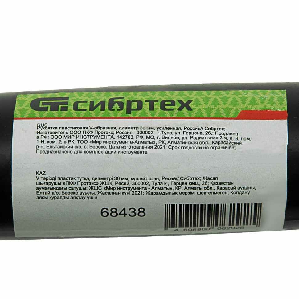 Рукоятка пластиковая V-образная, диаметр 36 мм, усиленная, Россия Сибртех 68438 СИБРТЕХ 68438