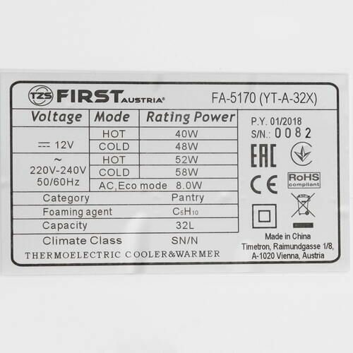 FIRST FA-5170 GREY Автохоодиьник 32 32.8.0х45.5х45.0см термоэектр.12/220V 58W пастик 5.2кг FIRST