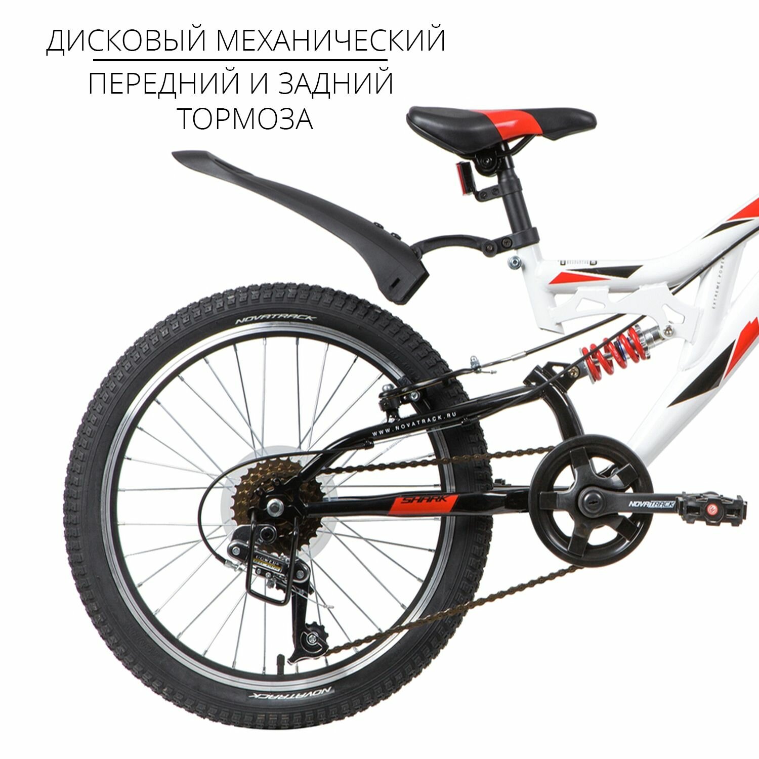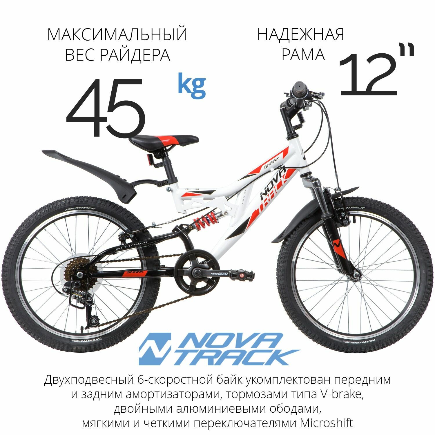 Велосипед 20 Novatrack (Двухподвес) SHARK (6-ск.) Белый WT20
