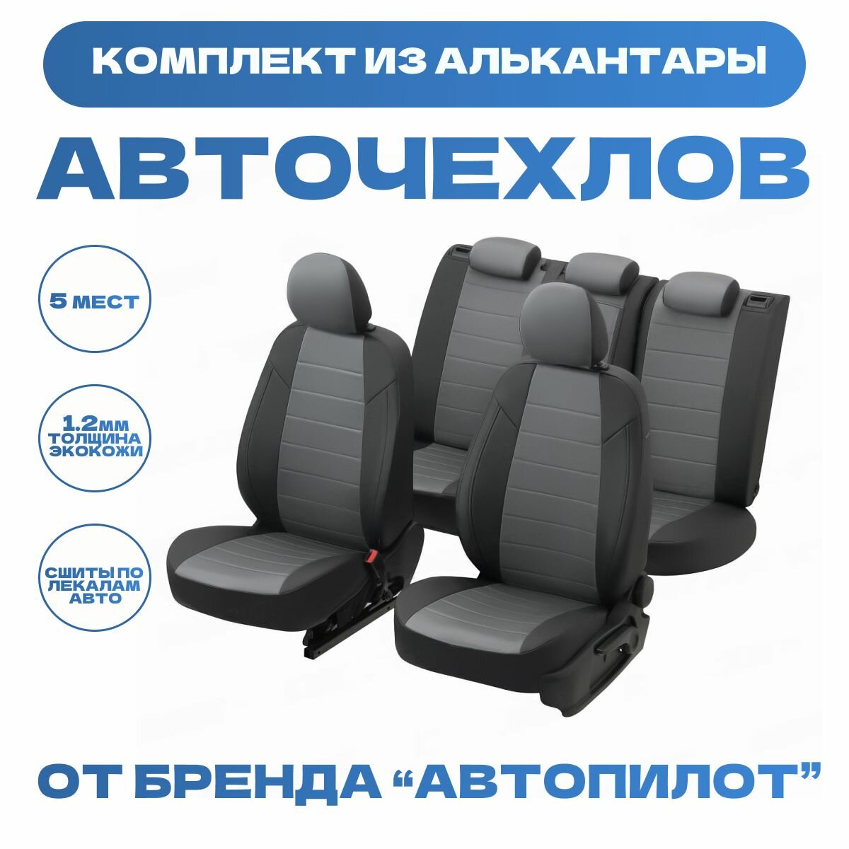 Комплект чехлов АВТОПИЛОТ из алькантары для Renault Logan 2, черный