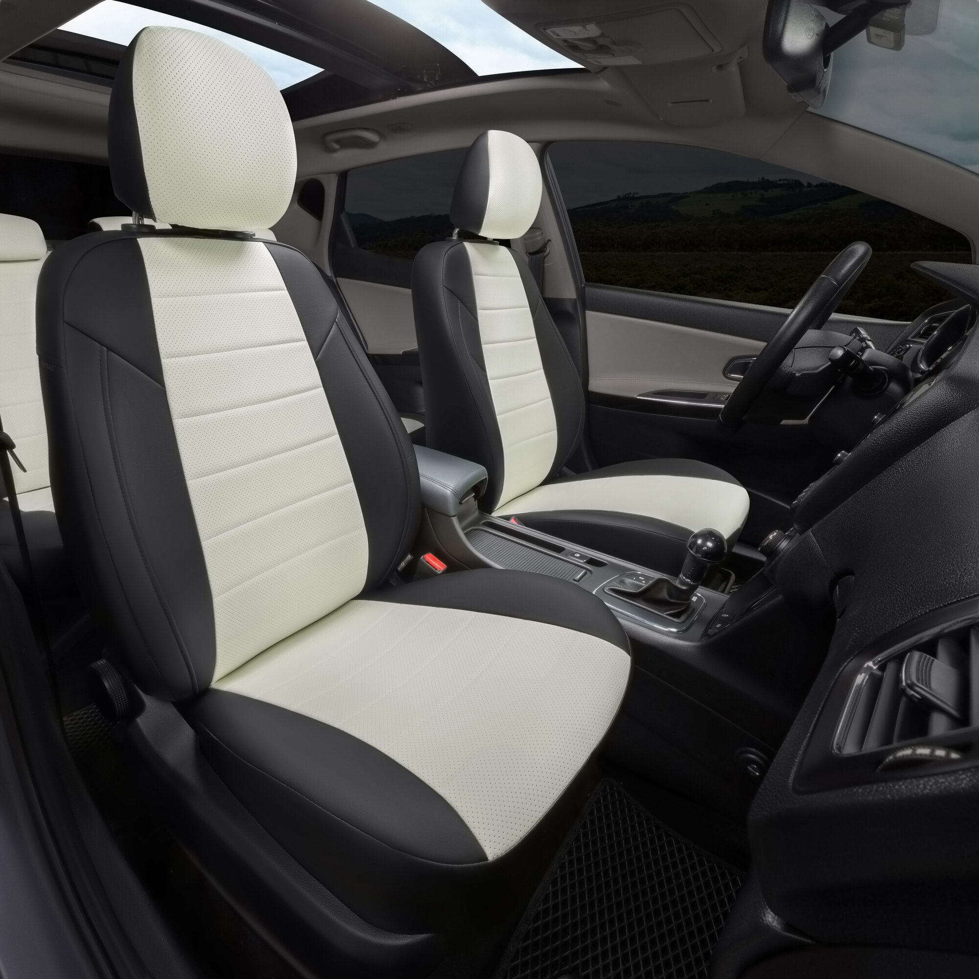 Комплект чехлов Автопилот Экокожа LADA Vesta / SW Cross NG Белый + Черный